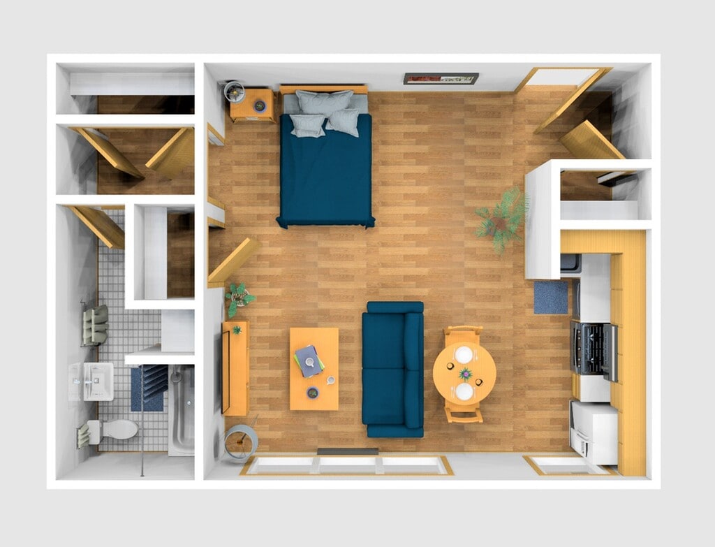 Studio Apt, 1 Bath - Plano 3 ![]()