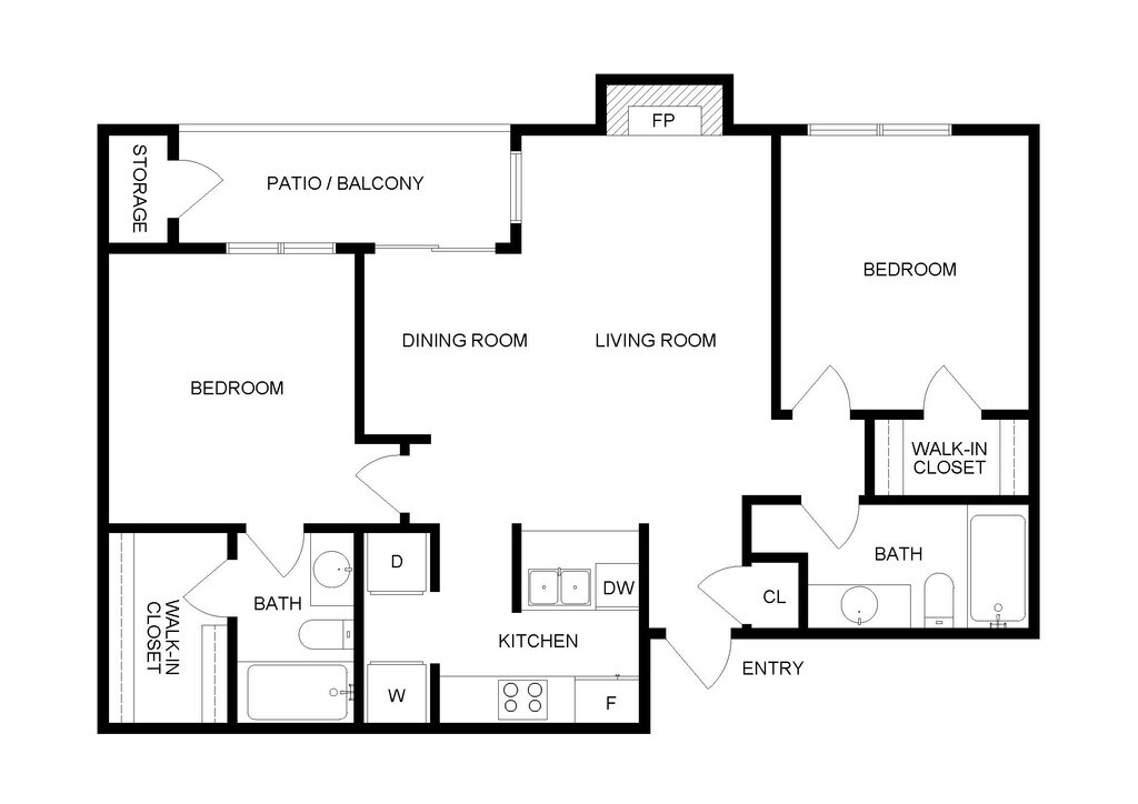 Modelo de apartamento: RangerDesde $9811 Dormitorio, 1 Baño, 629 sq ftDisponible Ahora![]()