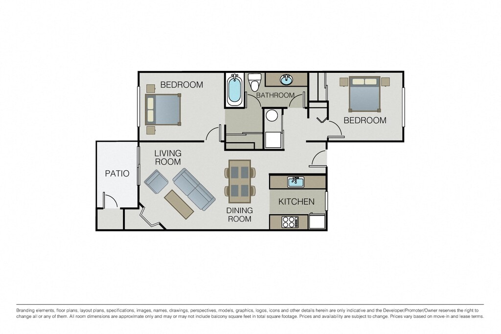 Modelo de apartamento: Plan 2A2 Dormitorios, 1 Baño, 850 sq ftDisponible Ahora![]()