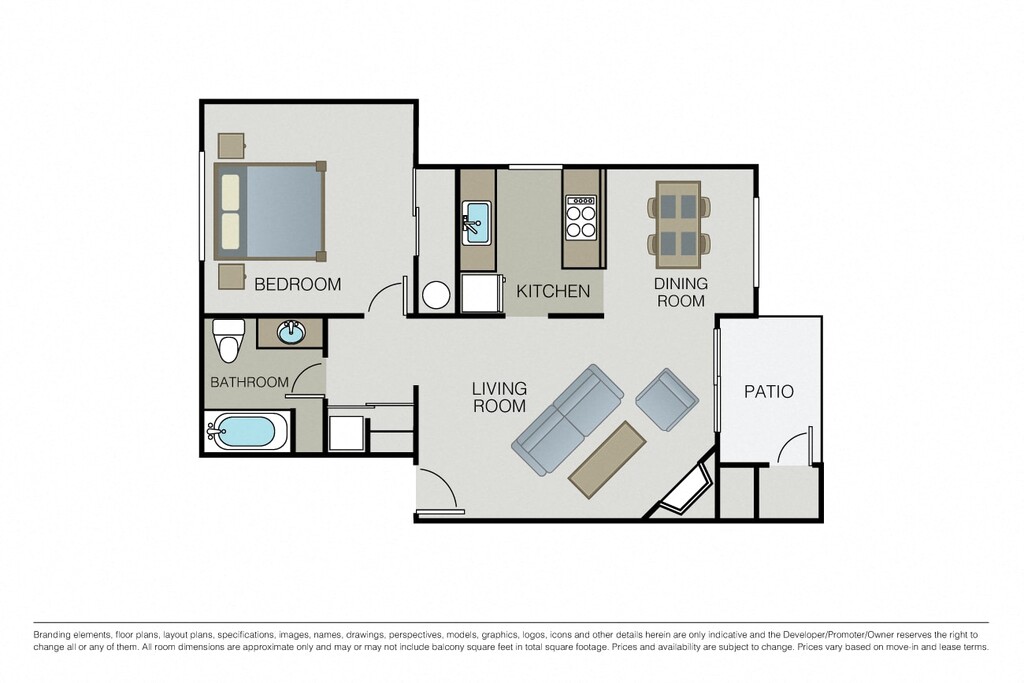 Modelo de apartamento: Plan 1A1 Dormitorio, 1 Baño, 700 sq ftDisponible Ahora![]()