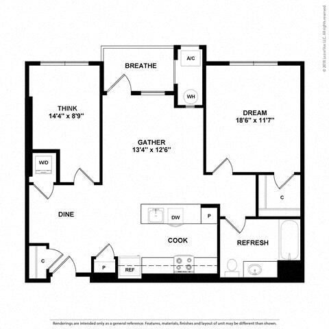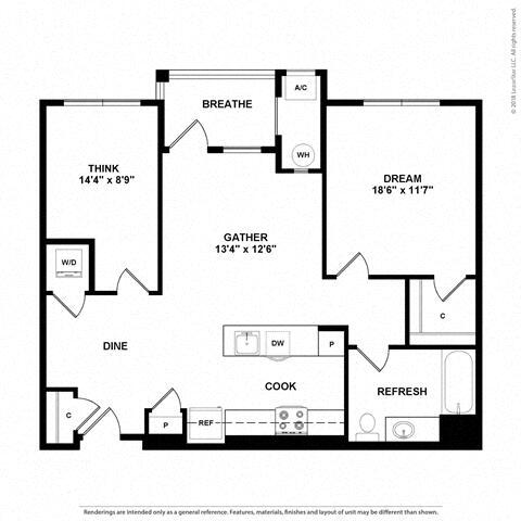 1 Dormitorio, 1 Baño, 773 pies²Disponible AhoraGalería del Modelo