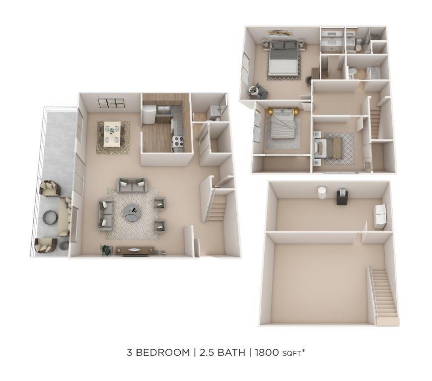 Modelo de apartamento: Three Bedroom 2.5 Bath TownhomeDesde $2,3003 Dormitorios, 2.5 Baños, 1800 sq ftDisponible November 21, 2025![]()