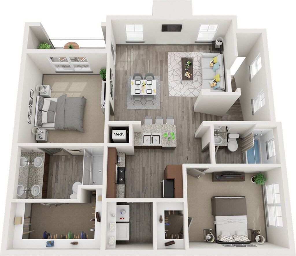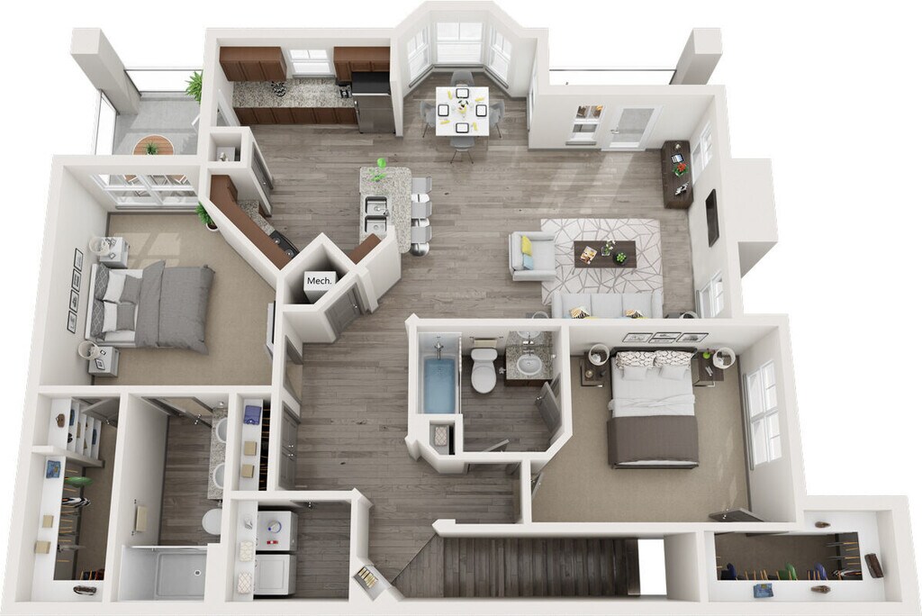 Modelo de apartamento: FinleyDesde $1,2871 Dormitorio, 1 Baño, 780 sq ftDisponible Ahora![]()