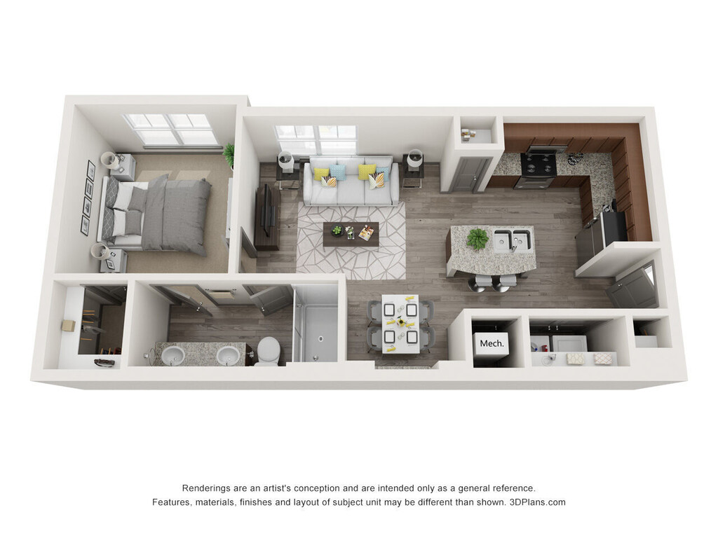 1 Dormitorio, 1 Baño, 766 pies²Galería del Modelo