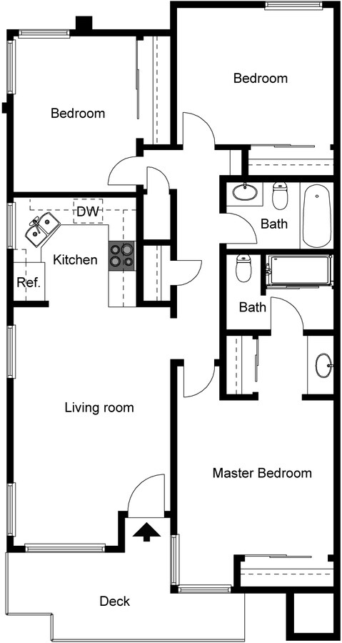 3 Bedroom 2 Bath - Plano 1 Unidad de apartamento: 621AModelo de apartamento: 3 Bedroom 2 Bath3 Dormitorios, 2 Baños, 975 sq ftDisponible February 13, 2026