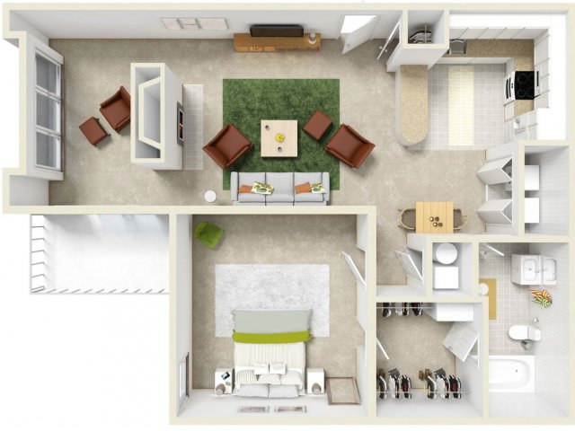 Modelo de apartamento: The AppletonLlame para Precios1 Dormitorio, 1 Baño, 842 sq ftNo Disponible![]()