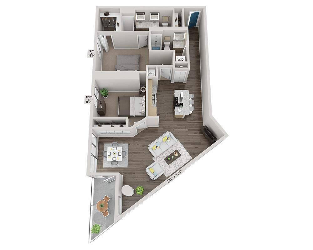 Unidad: 2313 - Imagen 4 Los planos son representaciones artísticas. Todas las dimensiones son aproximadas. El producto y las especificaciones reales pueden variar en tamaño o detalle. No todas las características están disponibles en cada vivienda en alquiler. Por favor, consulta con un representante para obtener más detalles.