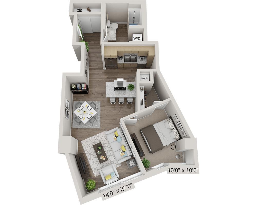 Estudio, 1 Baño, 520 pies²Precio Mensual TotalDisponible AhoraEl más grandeEsta opción tiene las unidades más grandes para este modeloGalería del Modelo
