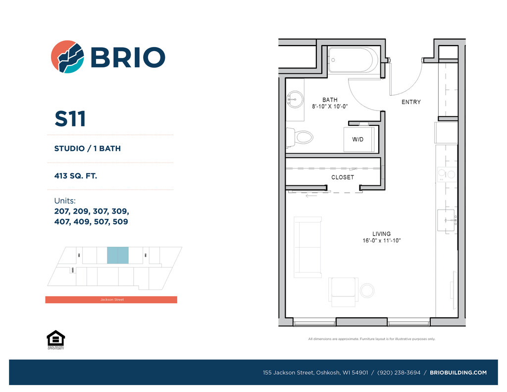 Brio Building ofrece apartamentos de Estudio a 2 Dormitorios desde $815 con 413–984 pies cuadrados. Aquí está el precio actual y la disponibilidad: