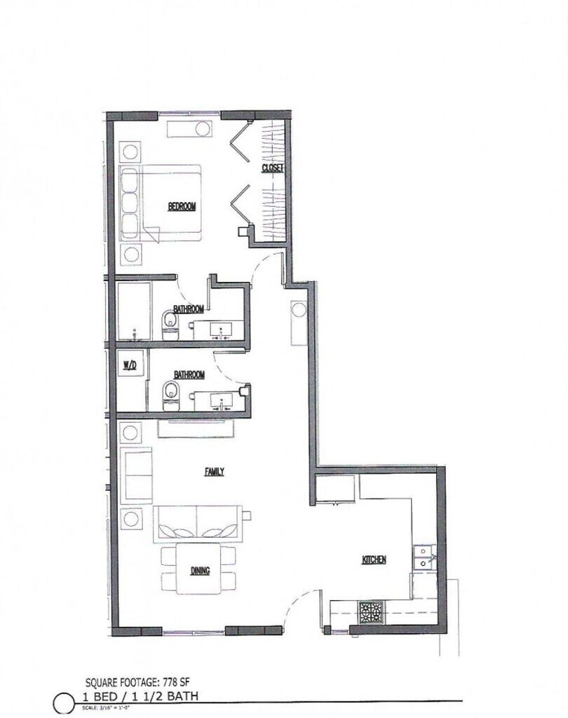 Unidad de apartamento: 102Modelo de apartamento: 1 x 1: Furnished$1,5951 Dormitorio, 1 Baño, 778 sq ftDisponible Ahora![]()