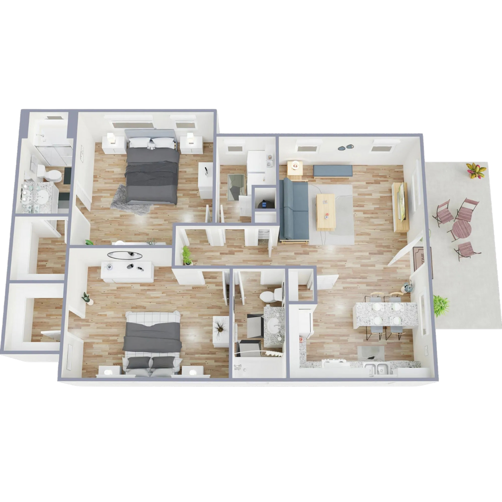 Modelo de apartamento: 2/2fur2 Dormitorios, 2 Baños, 1041 sq ftDisponible Ahora![]()