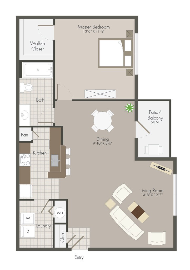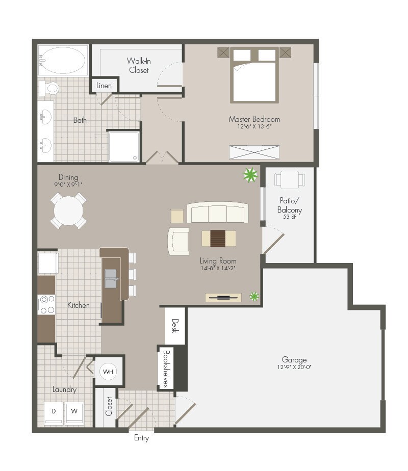 1 Dormitorio, 1 Baño, 740 pies²Disponible AhoraGalería del Modelo