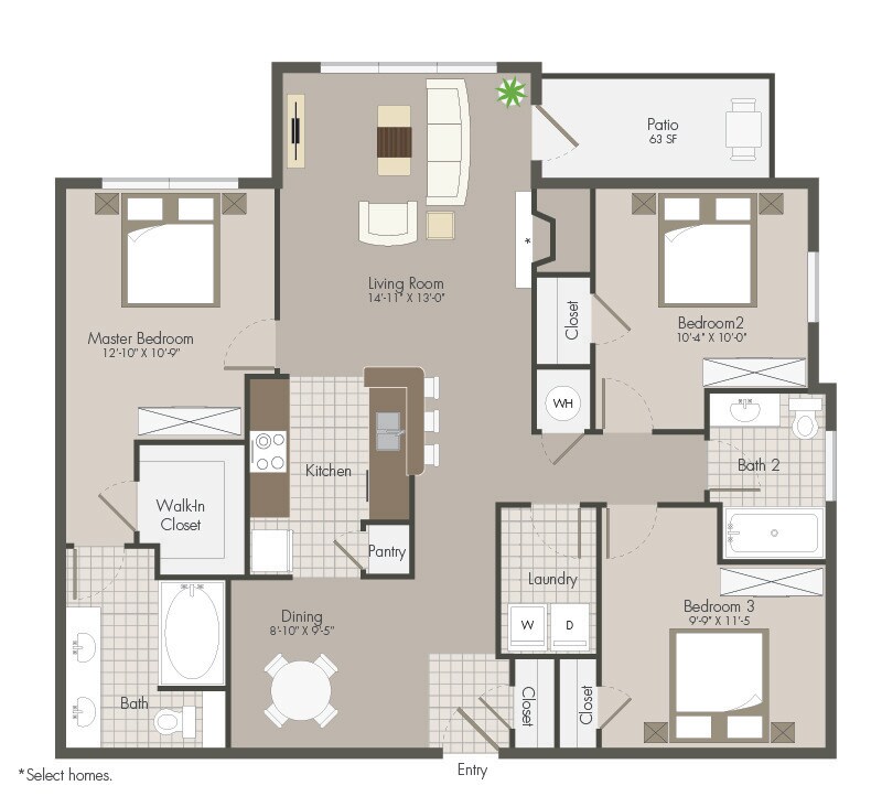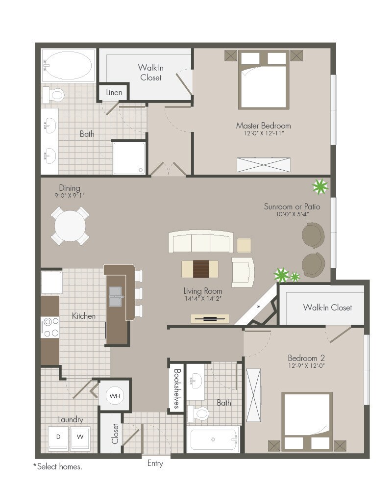 2 Dormitorios, 2 Baños, 1246 pies²Disponible AhoraEl más grandeEsta opción tiene las unidades más grandes para este modeloGalería del Modelo