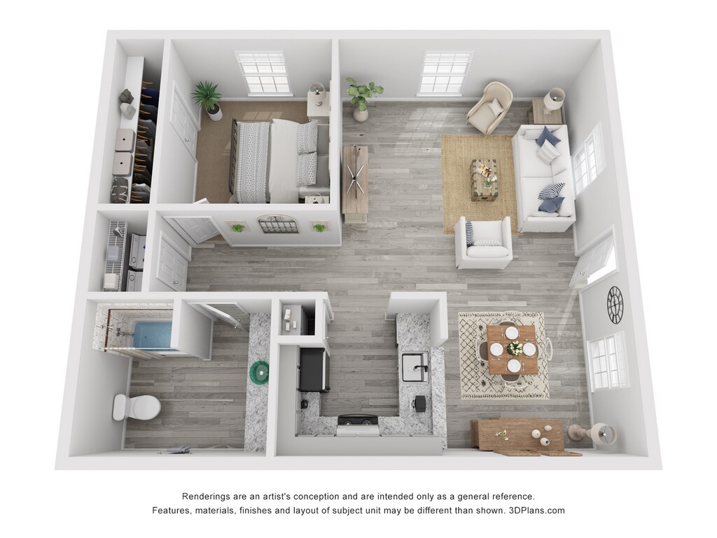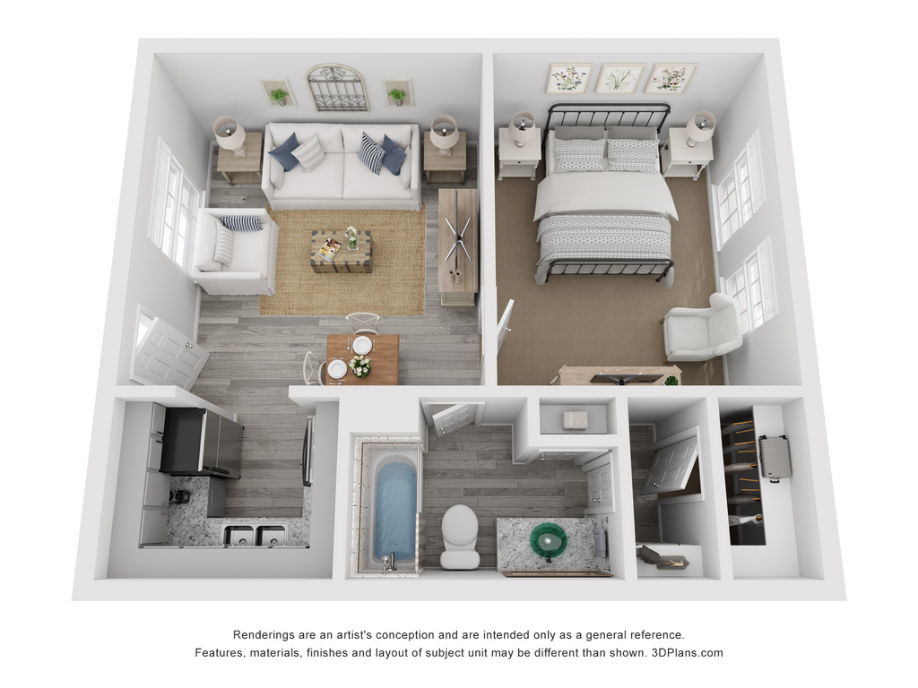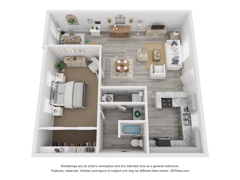 1 Dormitorio, 1 Baño, 510 pies²Disponible AhoraGalería del Modelo