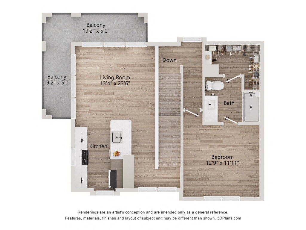 Estudio, 1 Baño, 667 pies²Disponible AhoraGalería del Modelo