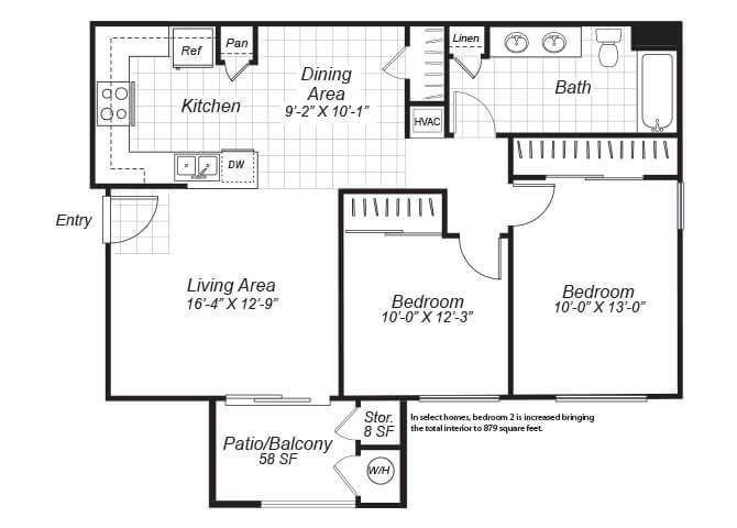 Modelo de apartamento: B22 Dormitorios, 1 Baño, 854-879 sq ftDisponible November 28, 2025![]()