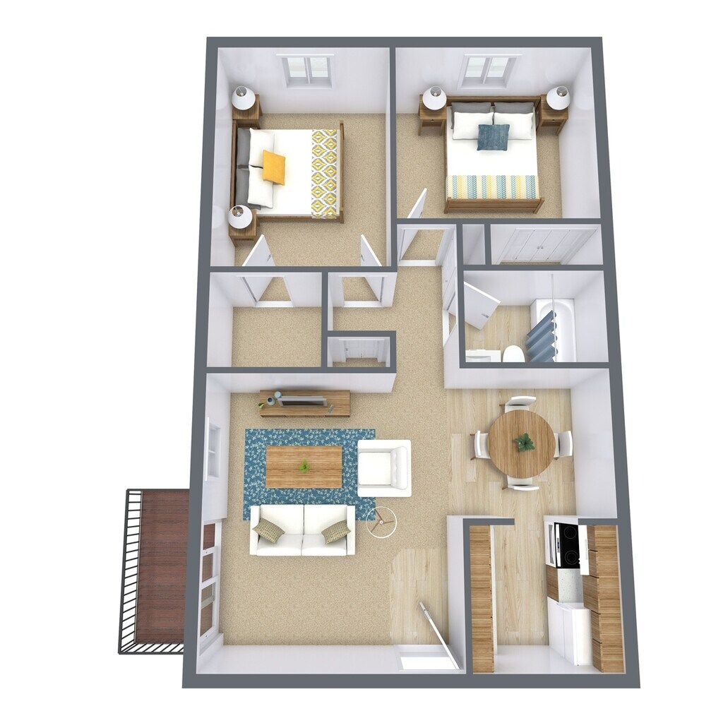 Modelo de apartamento: Two Bedroom 21A2 Dormitorios, 1 Baño, 850 sq ftDisponible December 4, 2025![]()