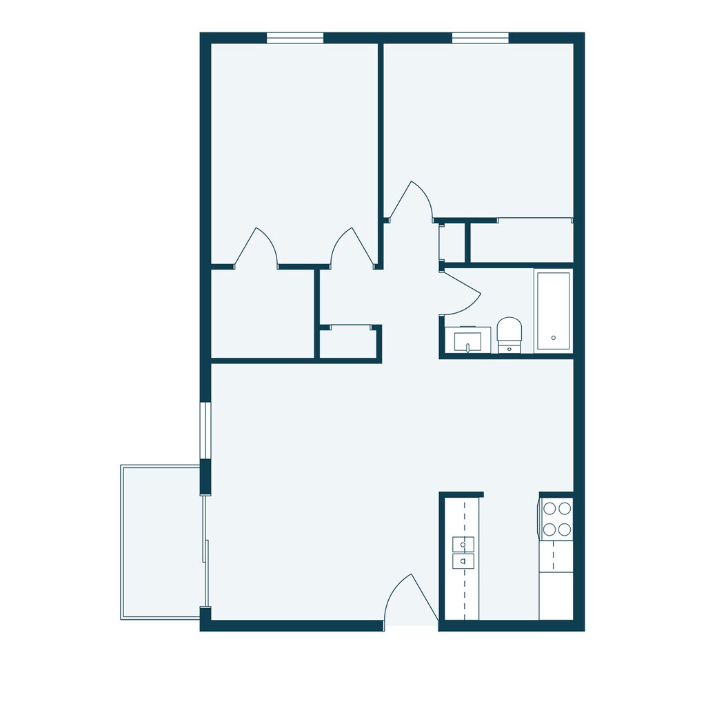 Modelo de apartamento: Two Bedroom 21B2 Dormitorios, 1 Baño, 850 sq ftDisponible April 1, 2026![]()