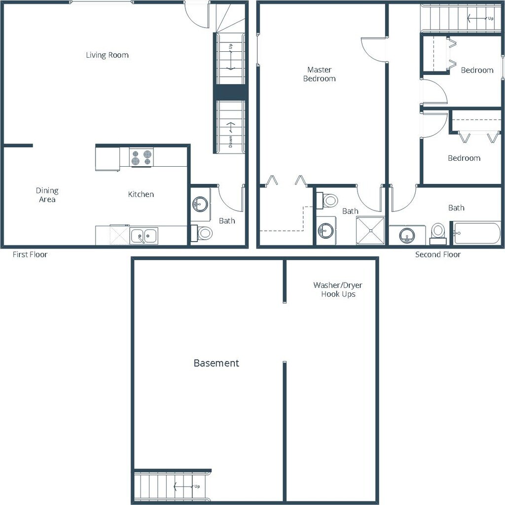 Three Bedroom Townhome 325A - Plano 1 Unidad de apartamento: 628Modelo de apartamento: Three Bedroom Townhome 325A3 Dormitorios, 2.5 Baños, 2280 sq ftDisponible December 17, 2025