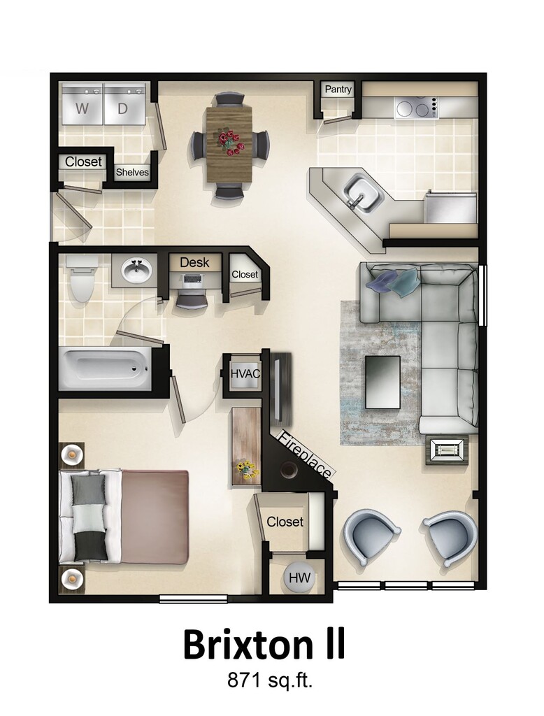 Modelo de apartamento: 1 Bedroom with Sunroom or Patio BrixtonDesde $1,5251 Dormitorio, 1 Baño, 804-871 sq ftDisponible Ahora![]()
