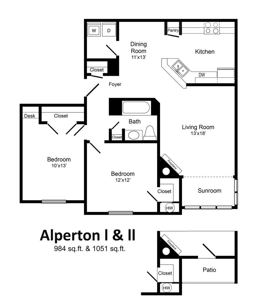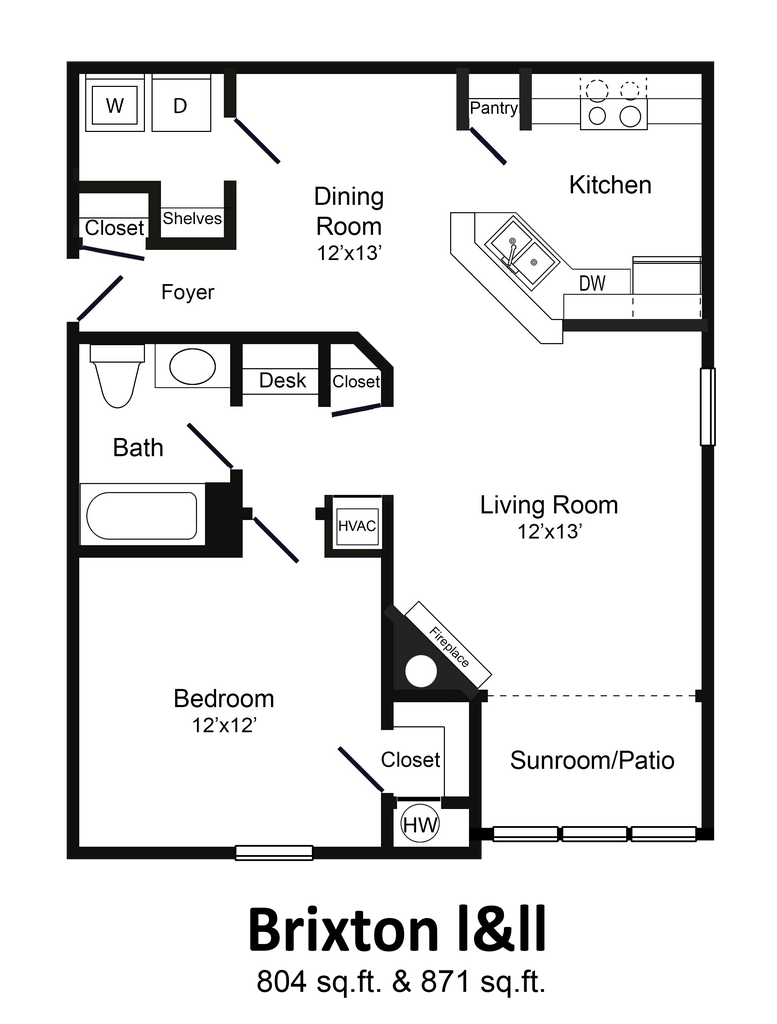 1 Bedroom with Sunroom or Patio Brixton - Plano 2 ![]()