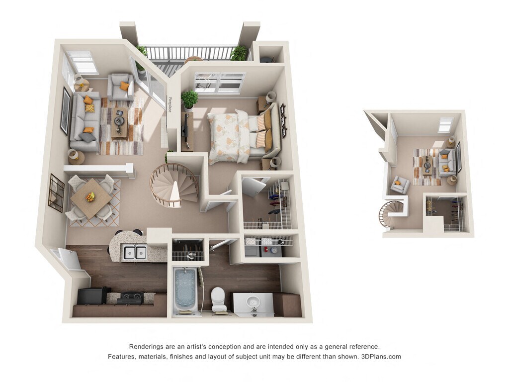 1 Dormitorio, 1 Baño, 805 pies²Disponible AhoraGalería del Modelo