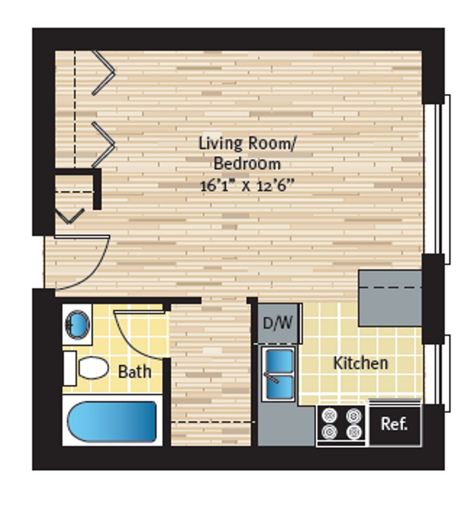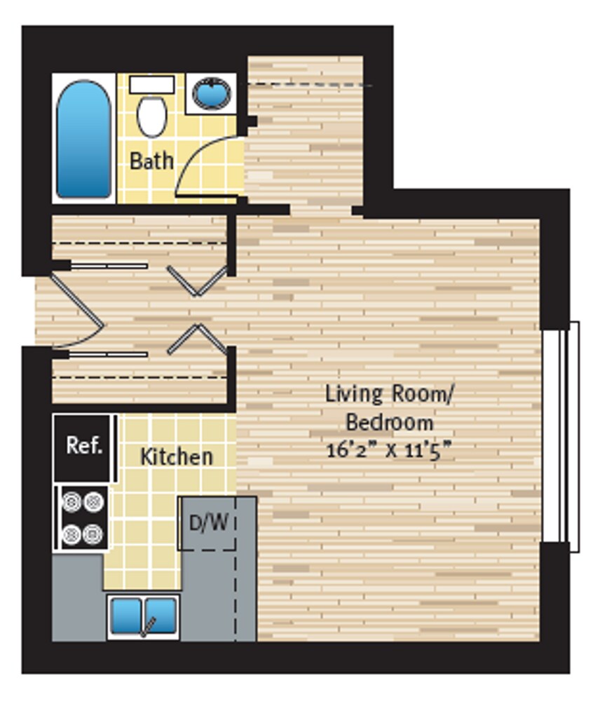 Estudio, 1 Baño, 413-419 pies²Detalles de Diponibilidad