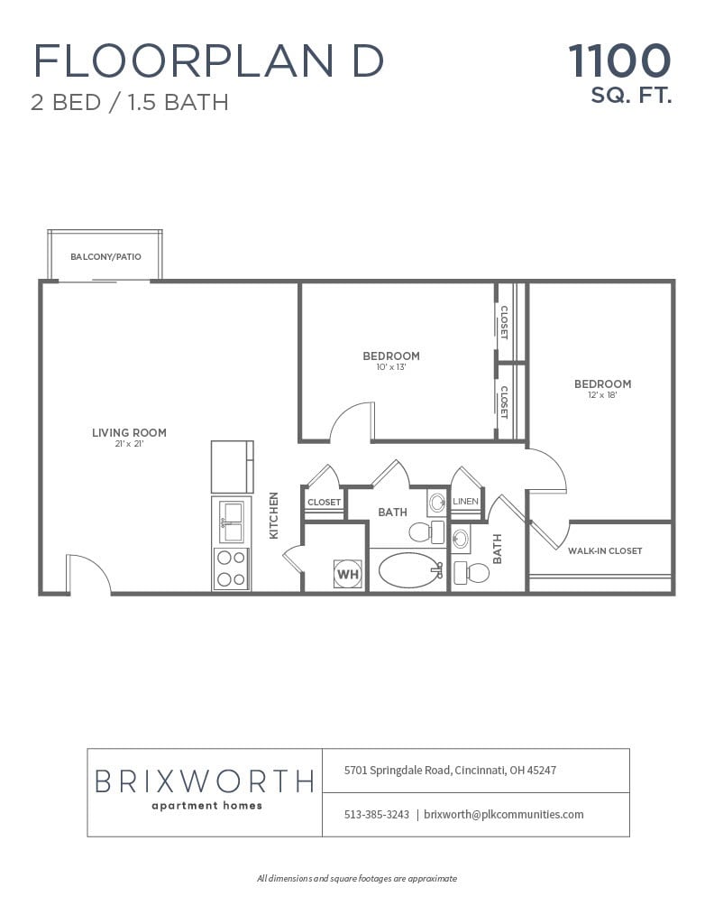 Modelo de apartamento: Daventry2 Dormitorios, 1.5 Baños, 1100 sq ftNo DisponibleDaventry - Plano 1 Durham
