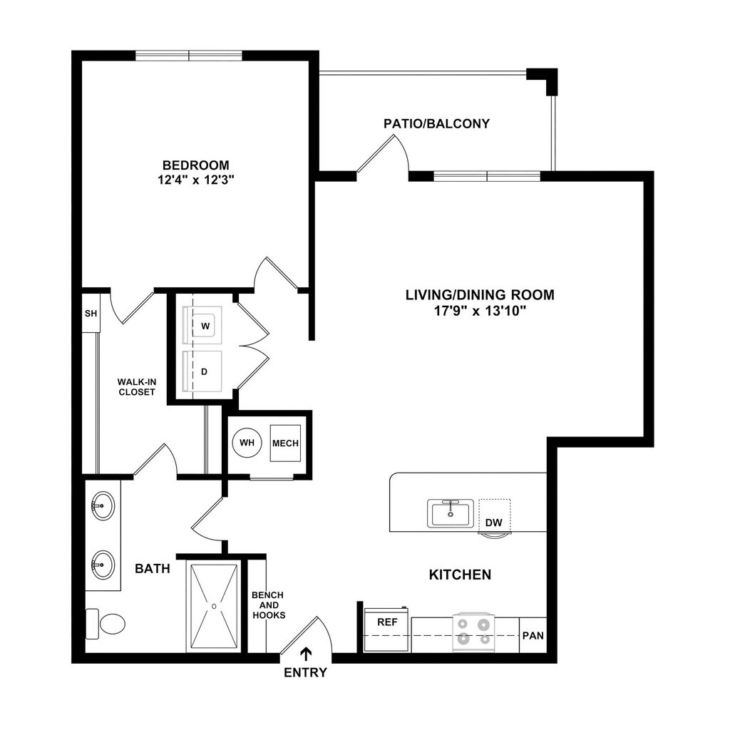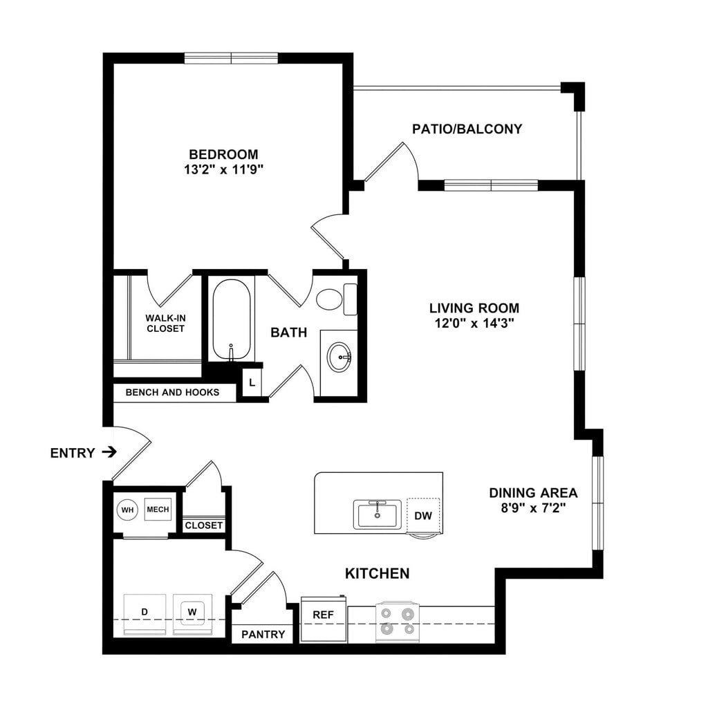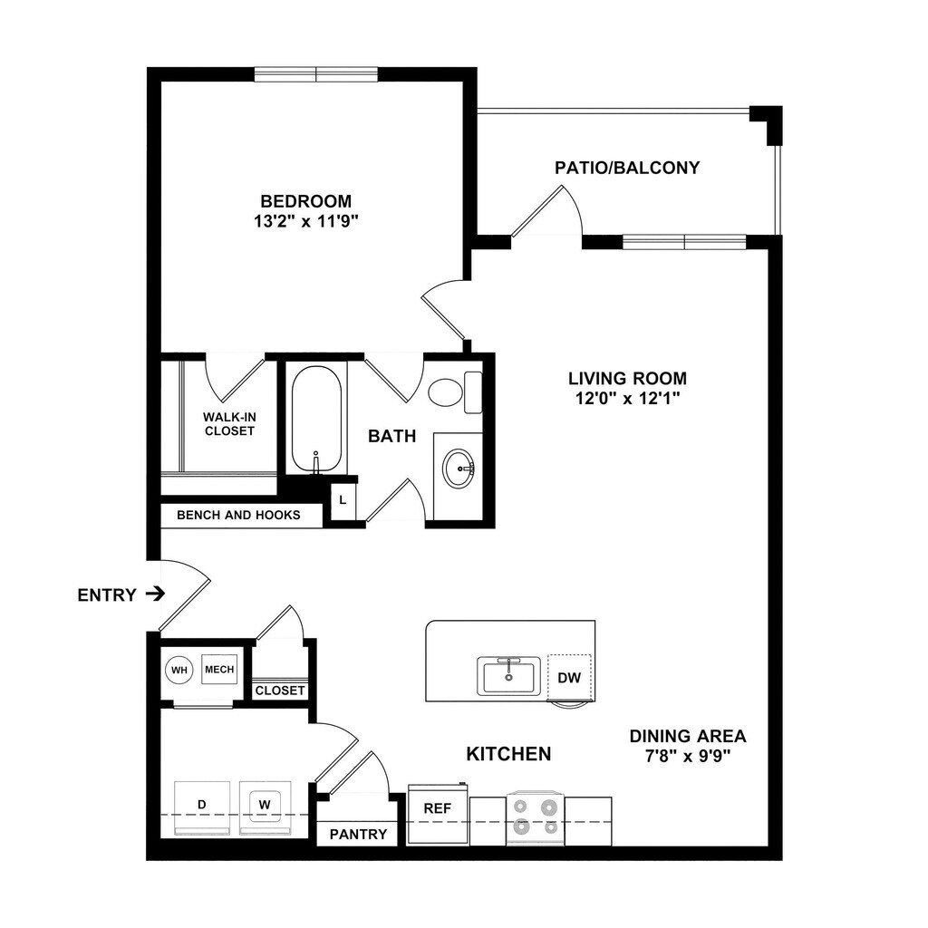 1 Dormitorio, 1 Baño, 792 pies²Disponible AhoraGalería del Modelo