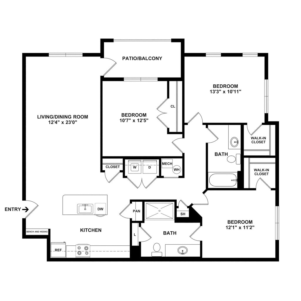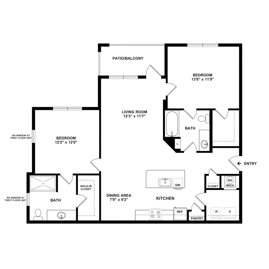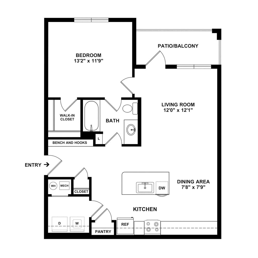 1 Dormitorio, 1 Baño, 792 pies²Disponible AhoraGalería del Modelo