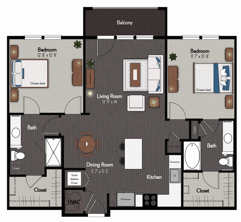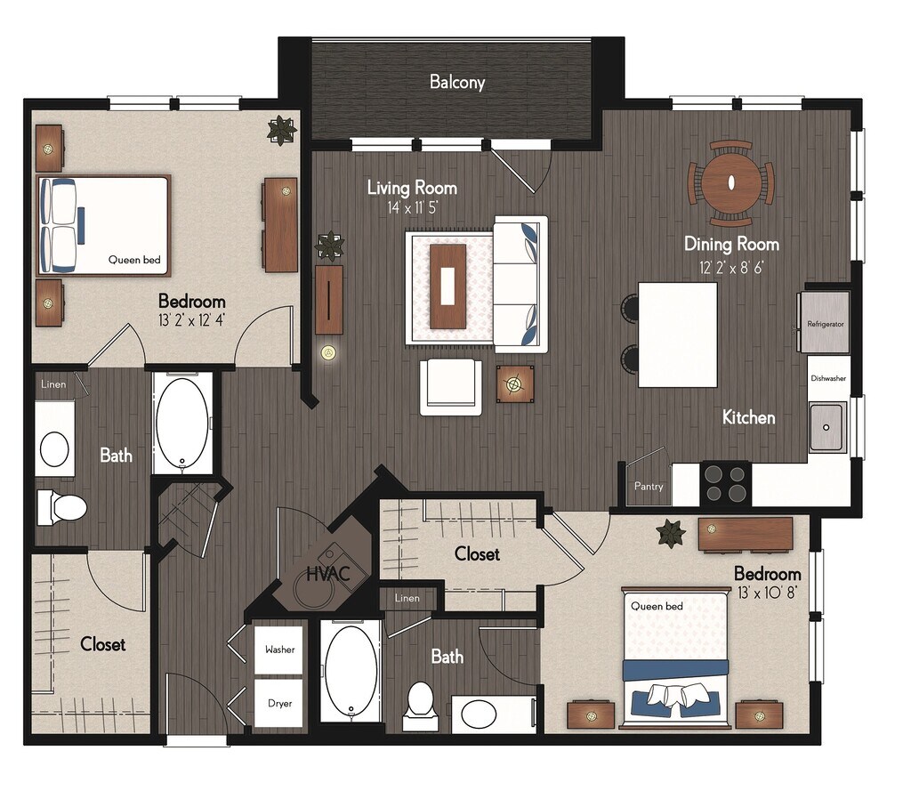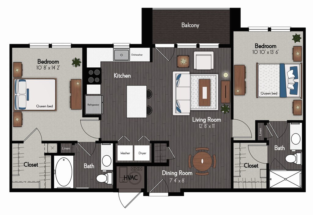 Modelo de apartamento: HaywoodDesde $2,1952 Dormitorios, 2 Baños, 1041 sq ftDisponible Ahora![]()