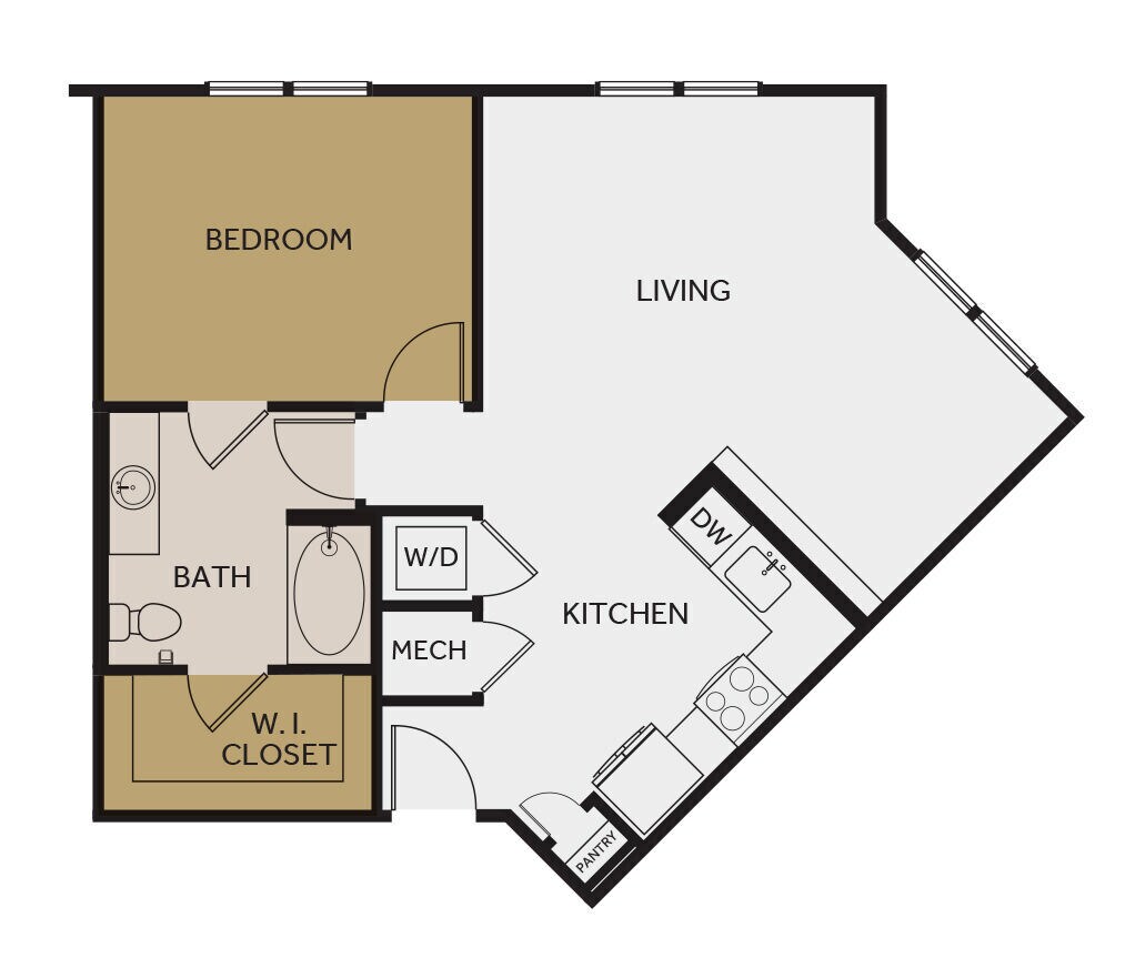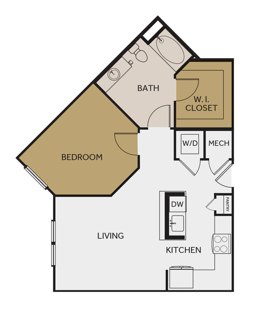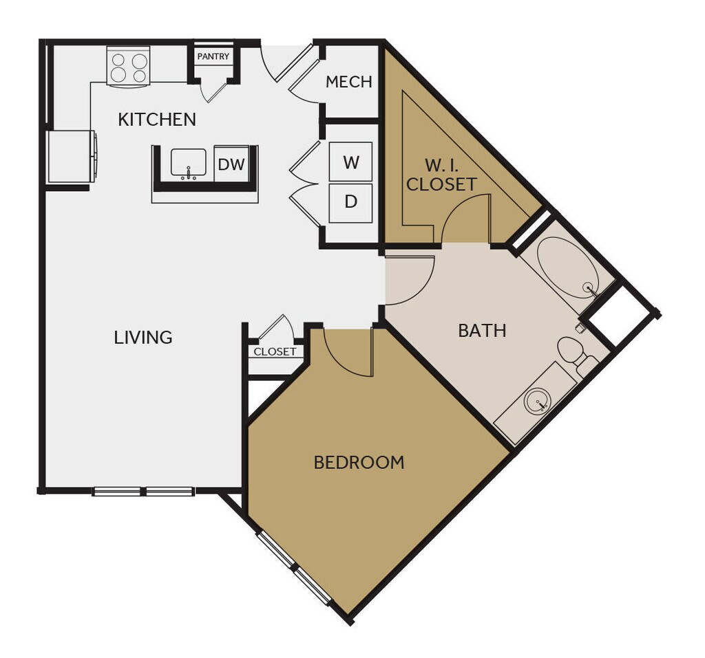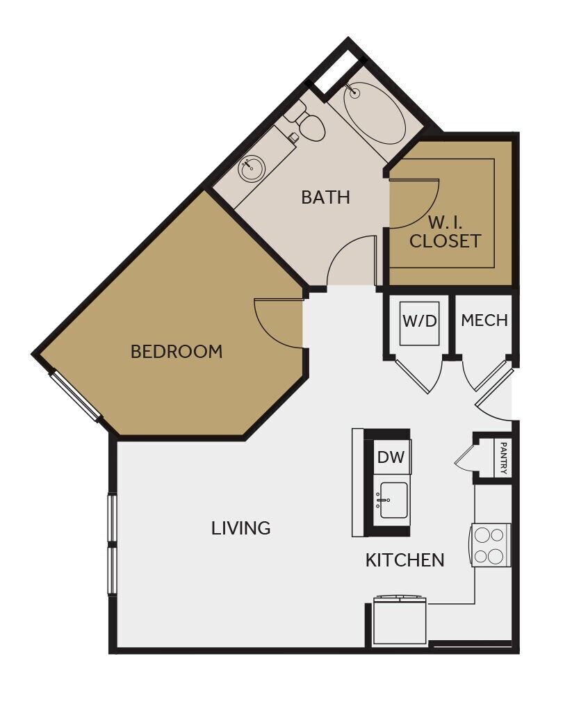 1 Dormitorio, 1 Baño, 725 pies²Disponible AhoraGalería del Modelo