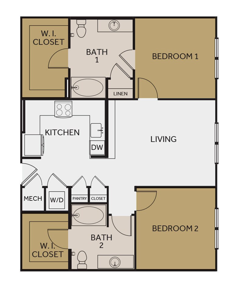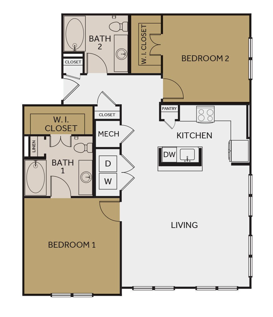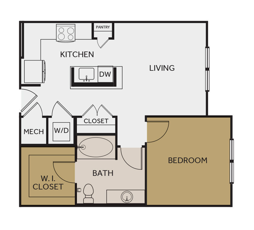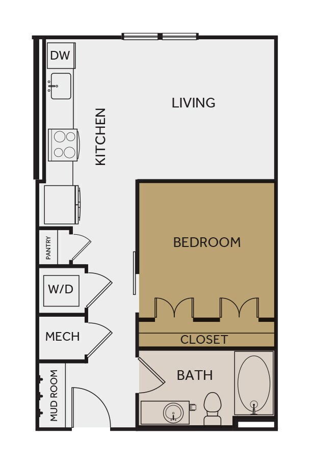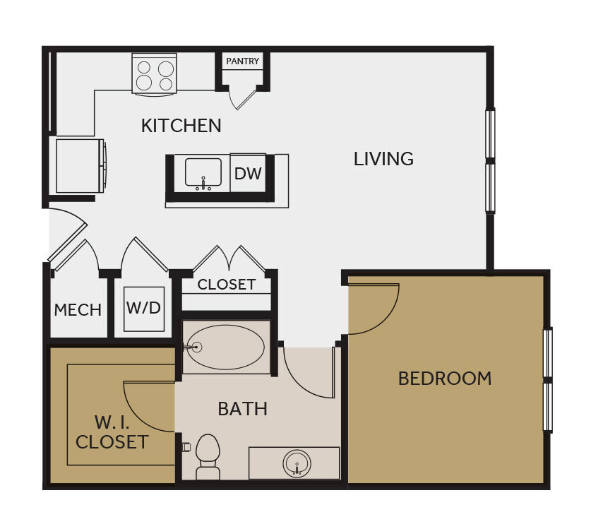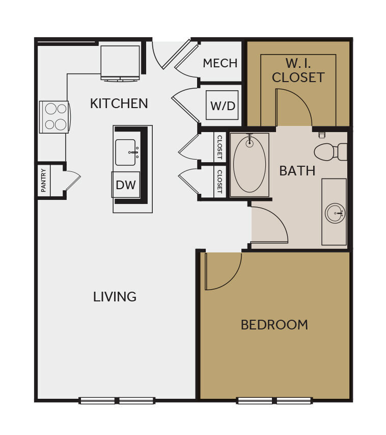1 Dormitorio, 1 Baño, 725 pies²Disponible AhoraGalería del Modelo