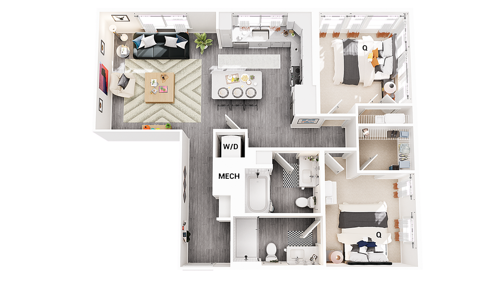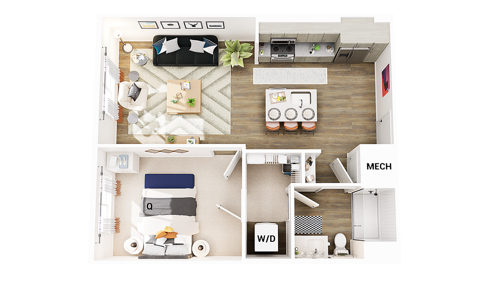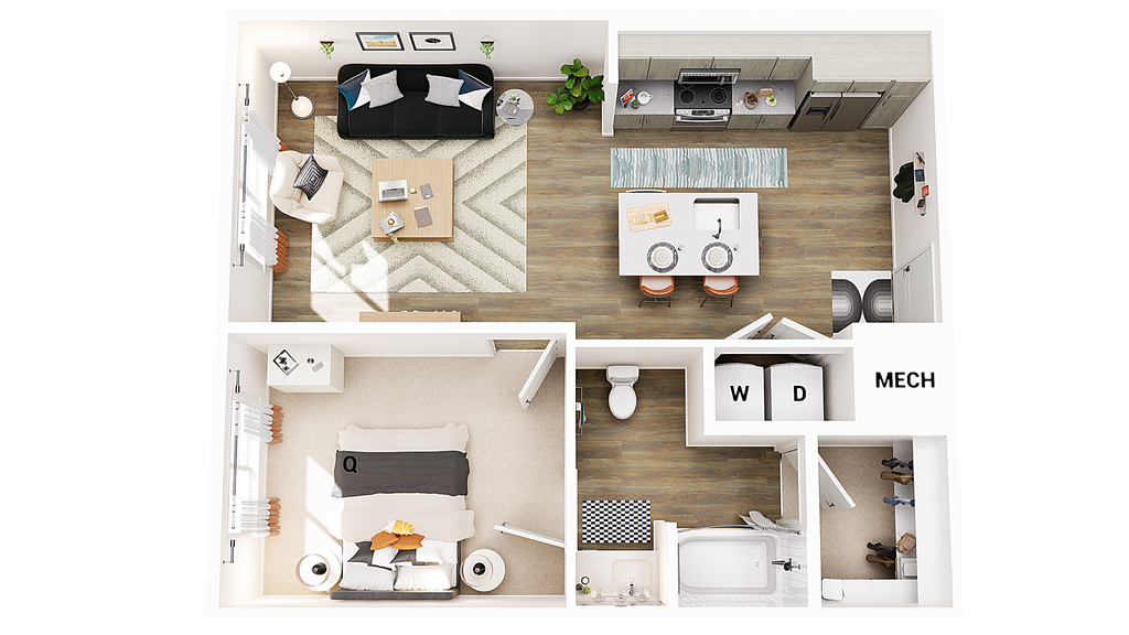 1 Dormitorio, 1 Baño, 664 pies²Disponible AhoraGalería del Modelo