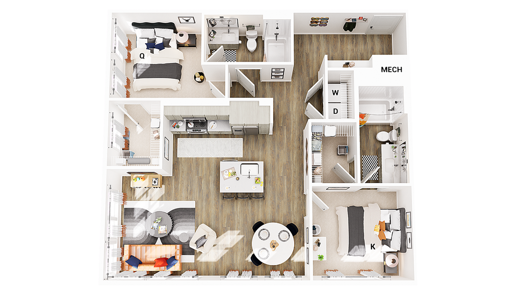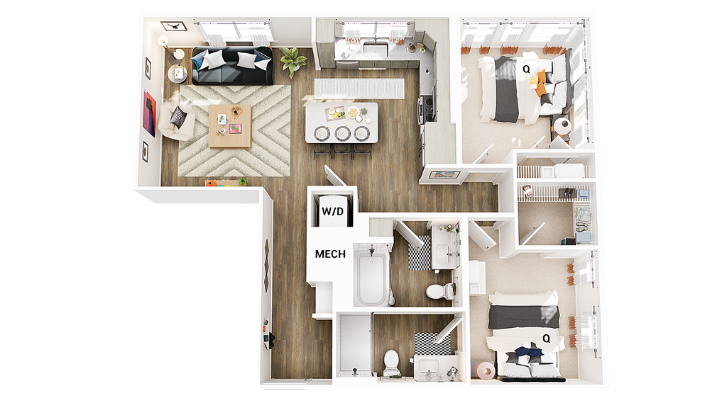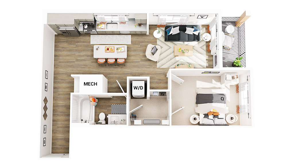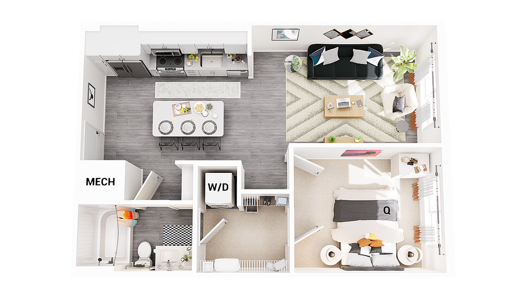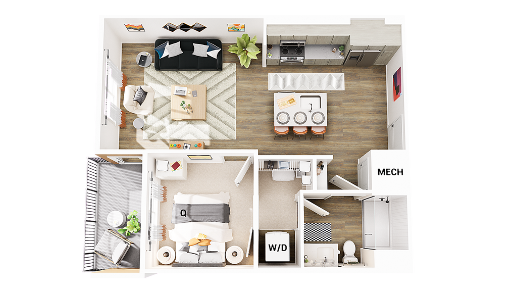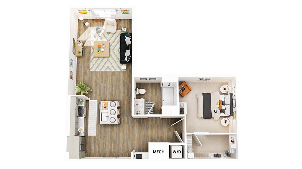 1 Dormitorio, 1 Baño, 674 pies²Disponible AhoraGalería del Modelo