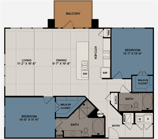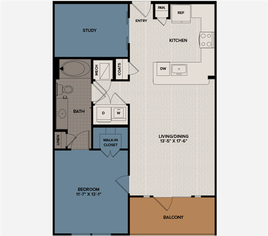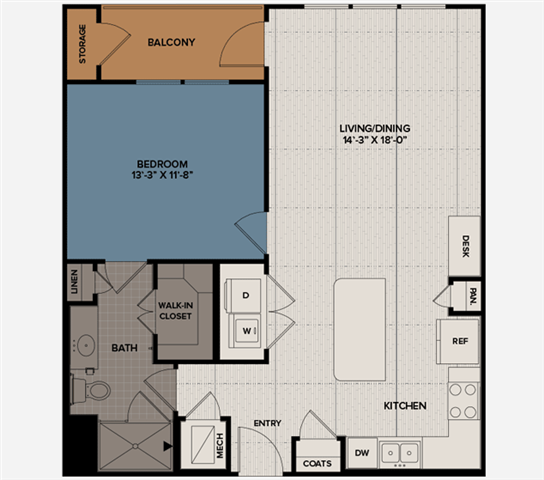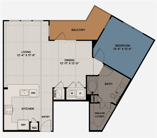 1 Dormitorio, 1 Baño, 740 pies²Disponible AhoraGalería del Modelo