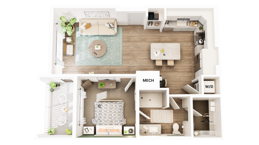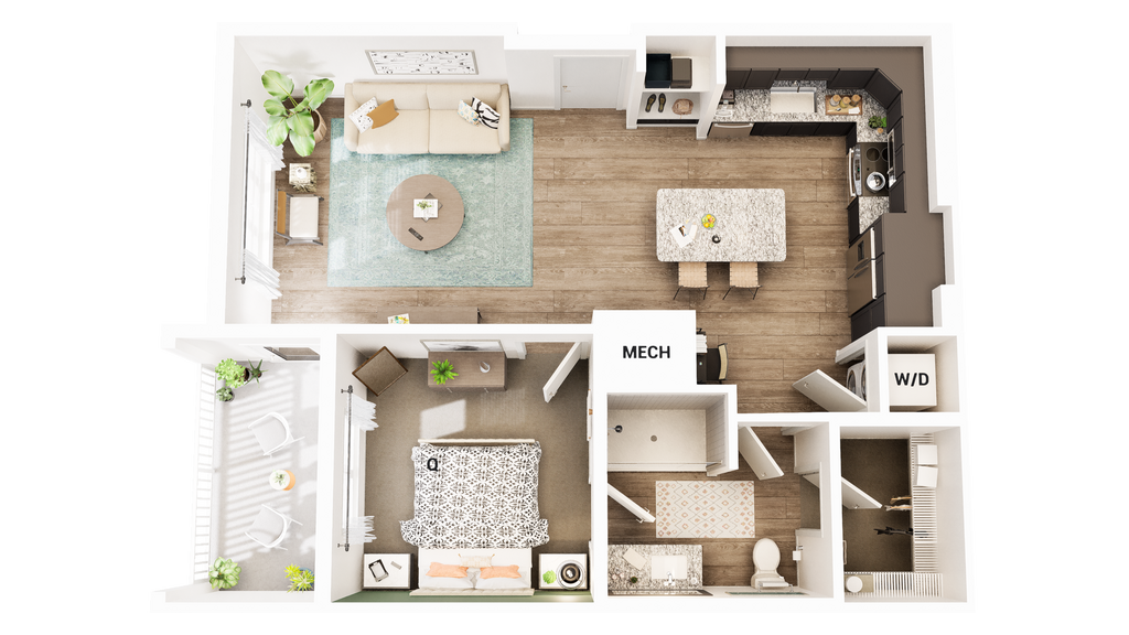 1 Dormitorio, 1 Baño, 729 pies²Disponible AhoraGalería del Modelo