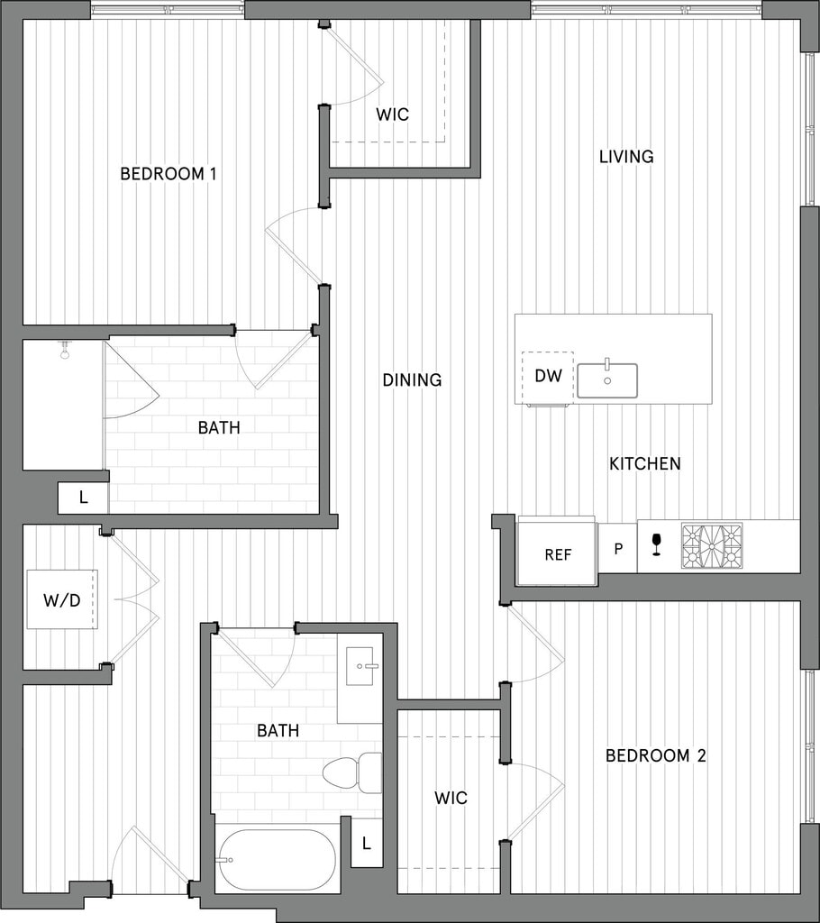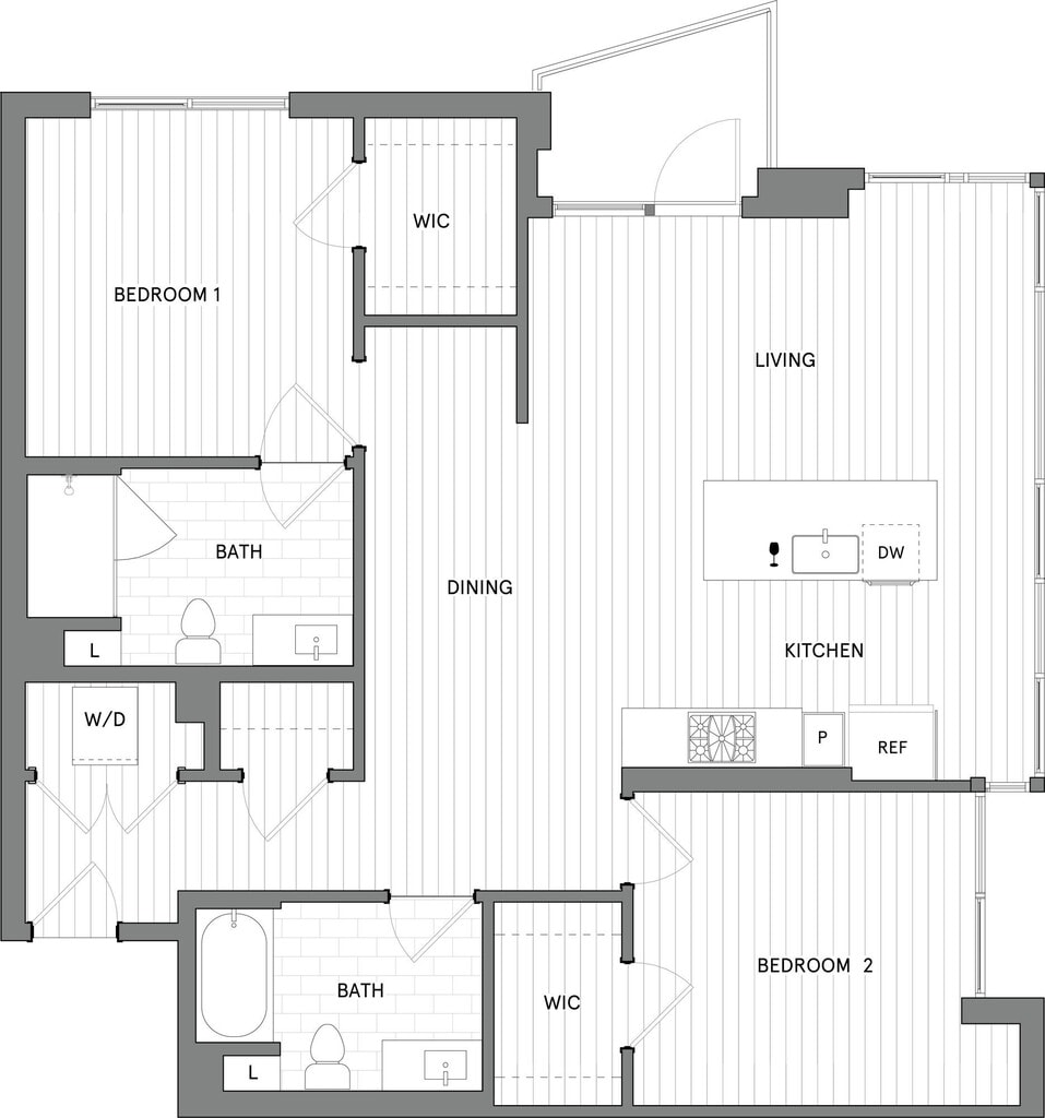 1 Dormitorio, 1 Baño, 748 pies²Disponible AhoraGalería del Modelo
