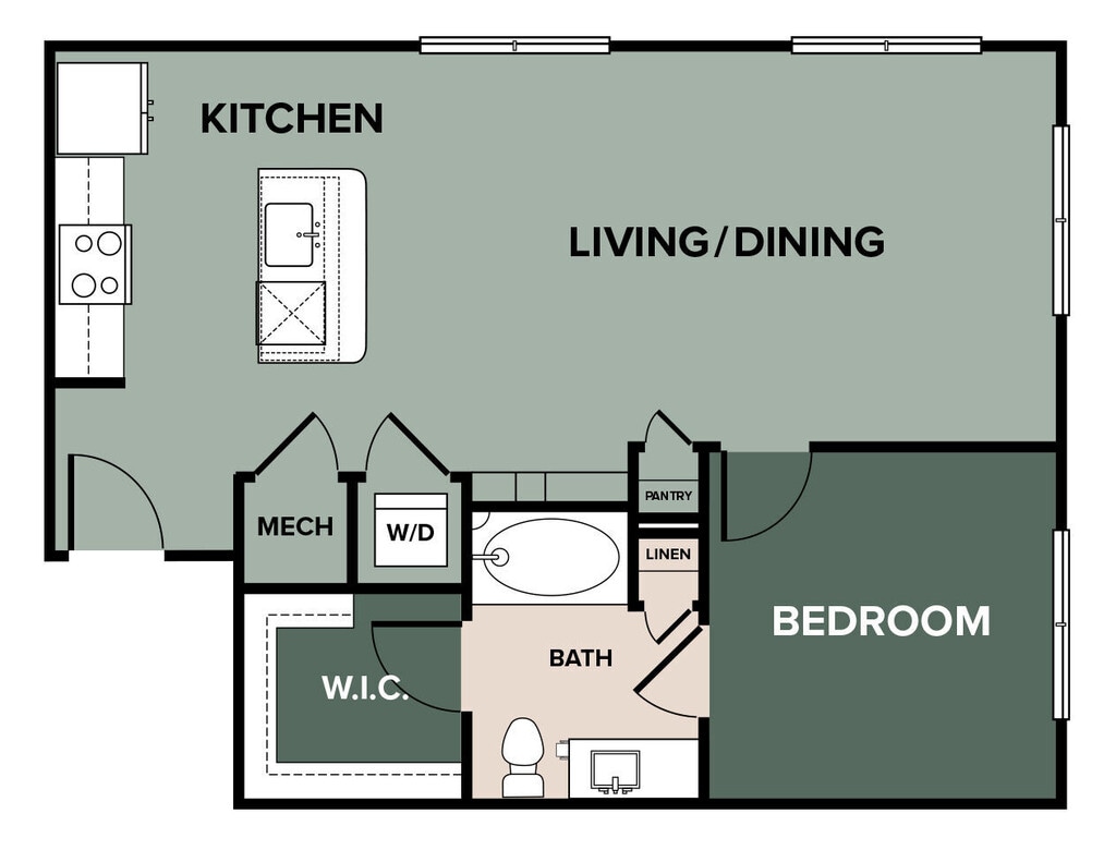 Modelo de apartamento: A1-A (ADA)Desde $1,4351 Dormitorio, 1 Baño, 674 sq ftDisponible Ahora![]()