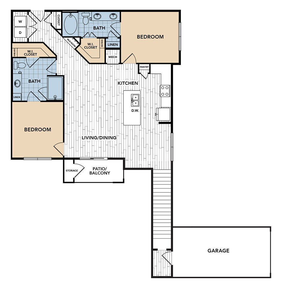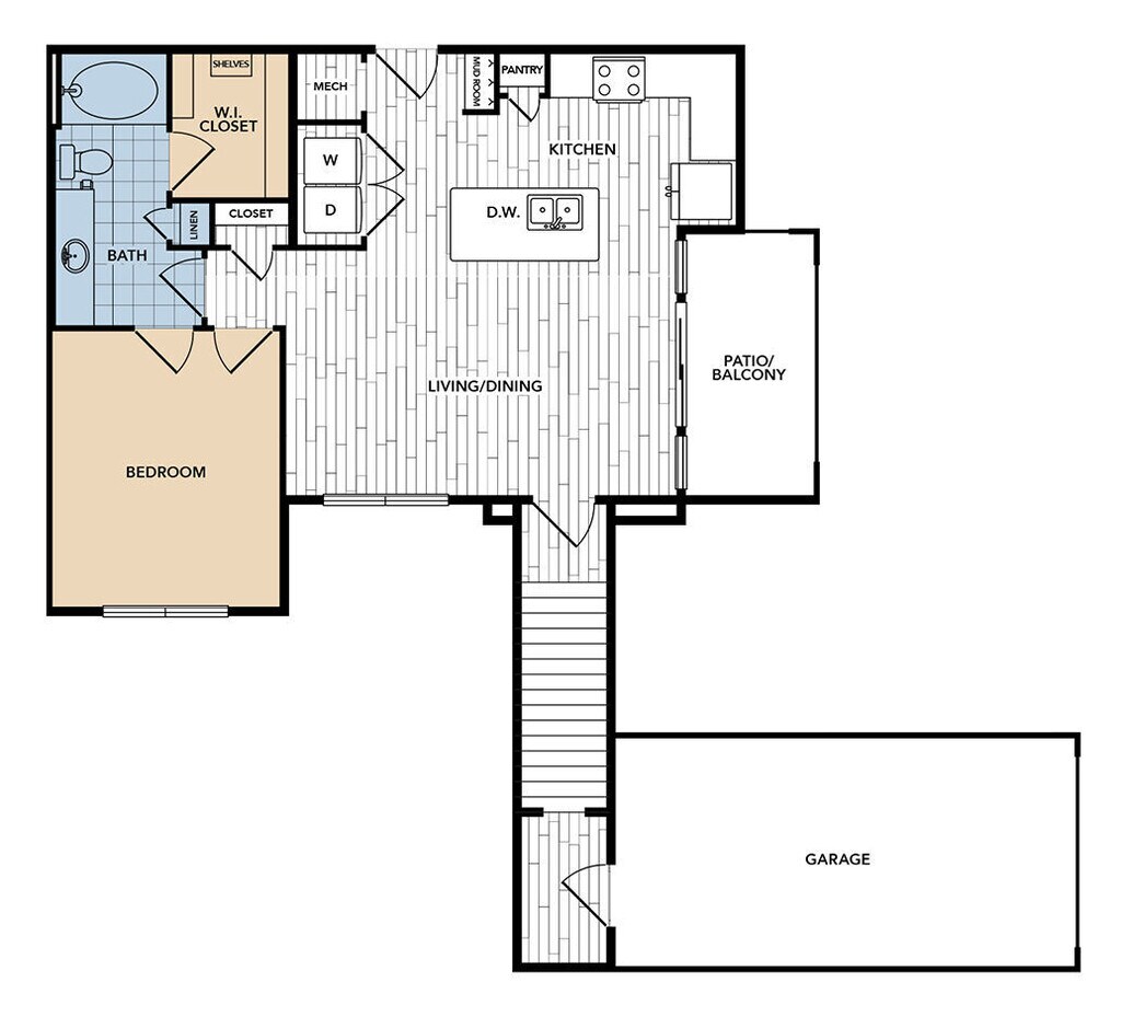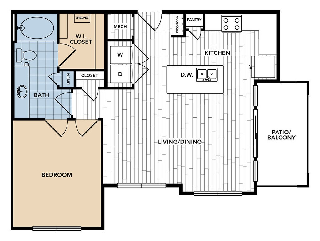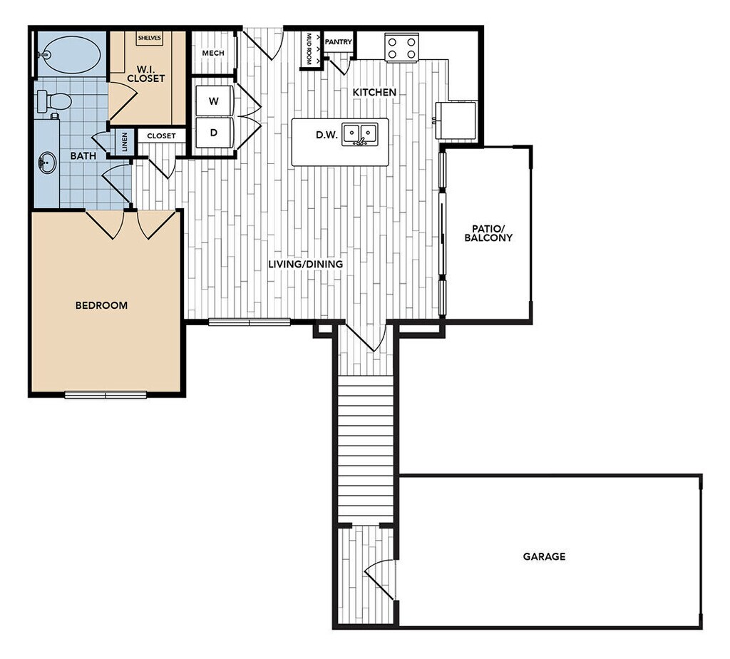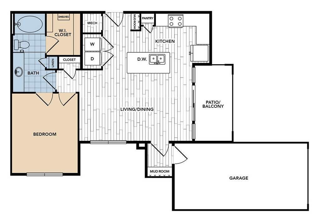 1 Dormitorio, 1 Baño, 789 pies²Disponible AhoraGalería del Modelo
