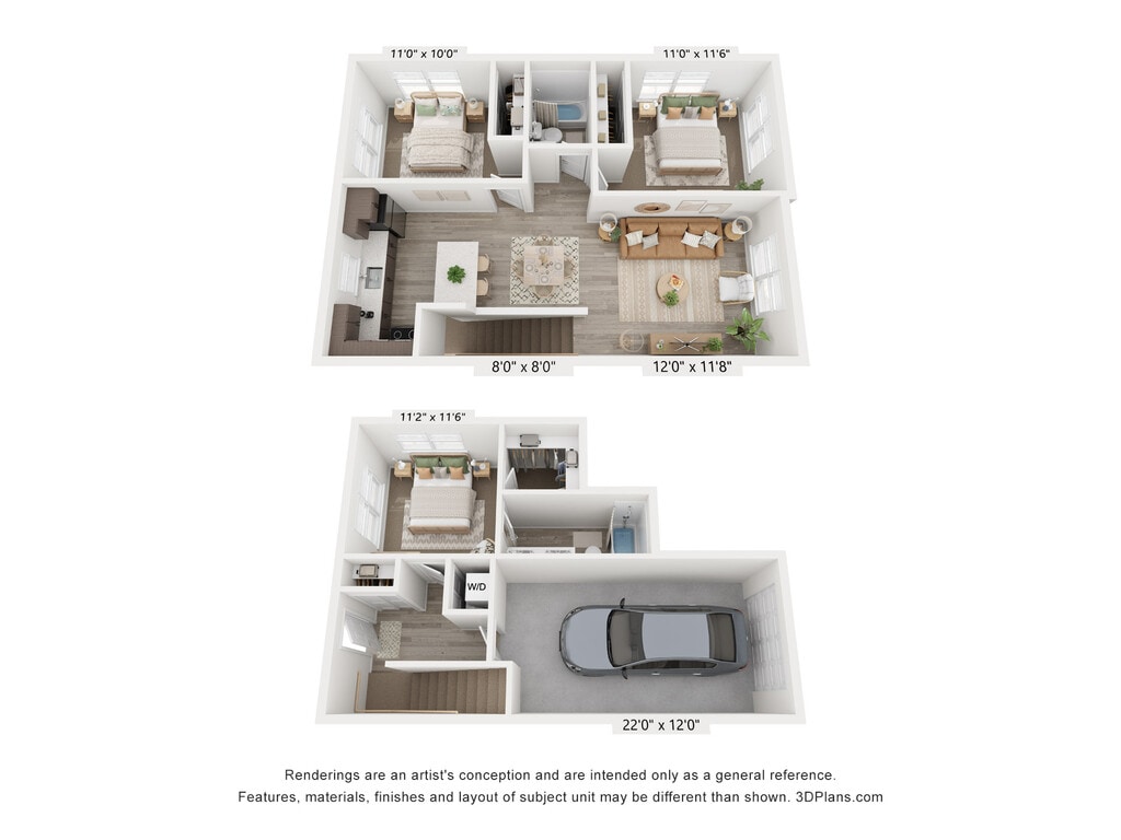 Modelo de apartamento: 2 Bedroom 2.5 Bath Townhome$1,6472 Dormitorios, 2.5 Baños, 1025 sq ftDisponible Ahora2 Bedroom 2.5 Bath Townhome - Plano 1 3 Dormitorios
