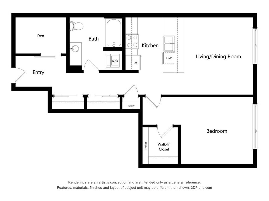 1 Dormitorio, 1 Baño, 598 pies²Disponible AhoraGalería del Modelo