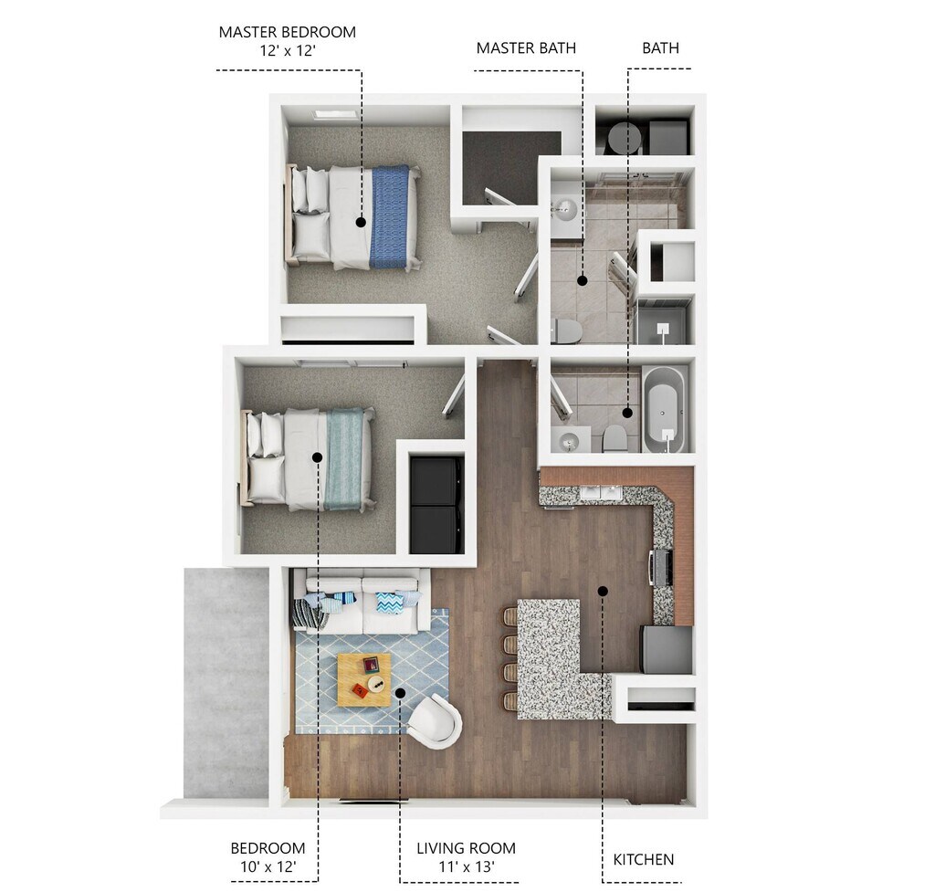 Modelo de apartamento: B5Llame para Precios2 Dormitorios, 2 Baños, 905 sq ftDisponible Ahora![]()