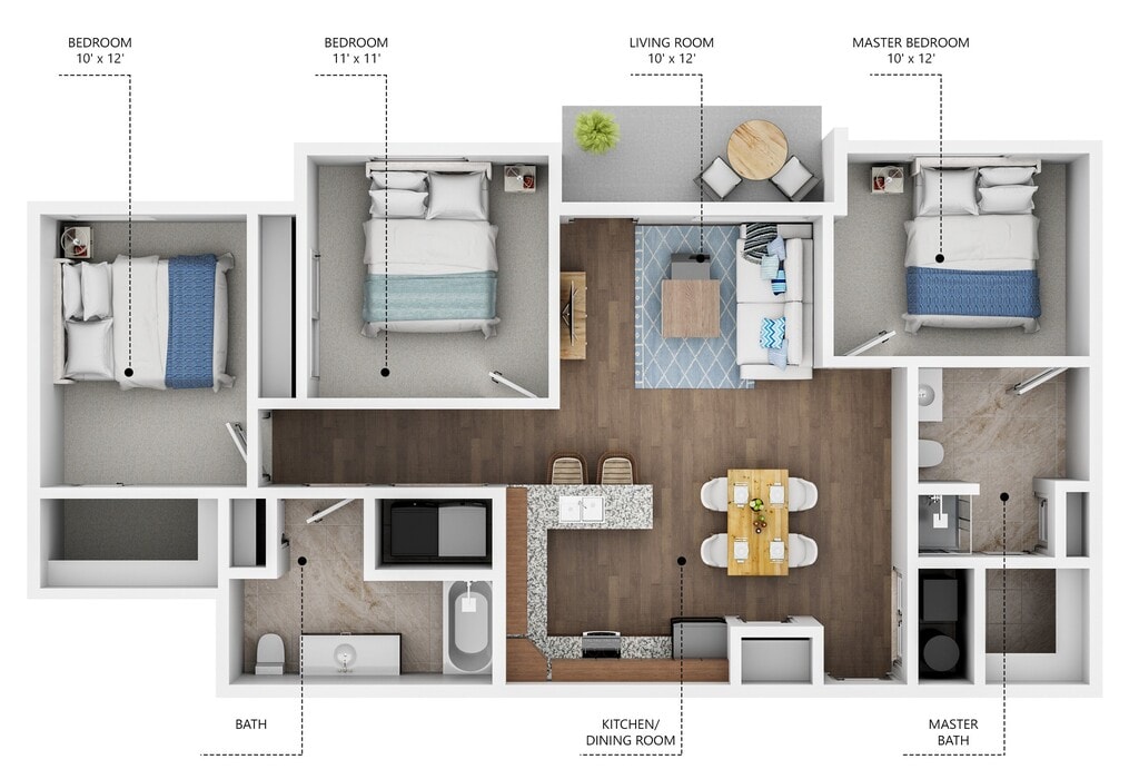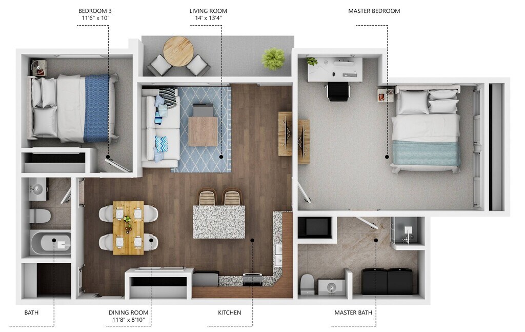 Modelo de apartamento: B3Llame para Precios2 Dormitorios, 2 Baños, 855 sq ftDisponible Ahora![]()