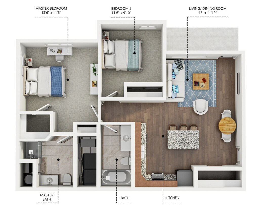 Modelo de apartamento: B2 - 60 - Income Restricted$1,1952 Dormitorios, 2 Baños, 905 sq ftDisponible Ahora![]()