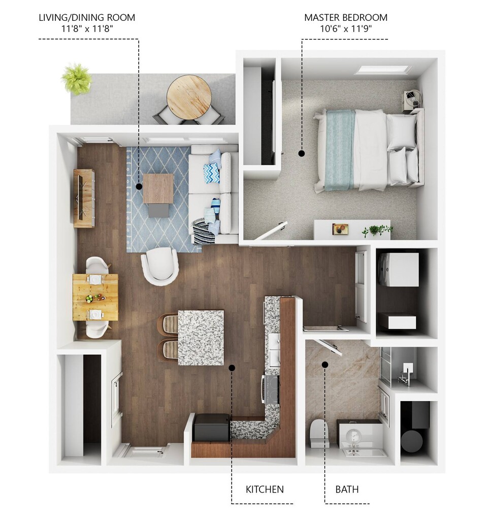 Modelo de apartamento: A1 - 60 - Income Restricted$9951 Dormitorio, 1 Baño, 630 sq ftDisponible Ahora![]()