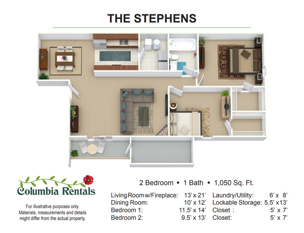2 Dormitorios, 1 Baño, 1050 pies²Disponible AhoraGalería del Modelo