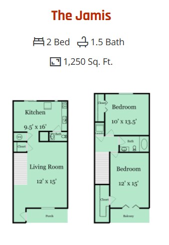 Modelo de apartamento: The Jamis - Townhome$1,4492 Dormitorios, 1.5 Baños, 1250 sq ftNo DisponibleThe Jamis - Townhome - Plano 1