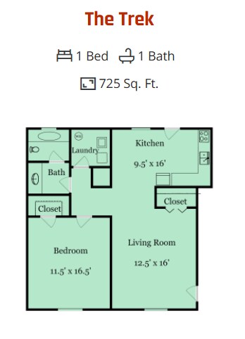 1 Dormitorio, 1 Baño, 725 pies²Disponible AhoraGalería del Modelo