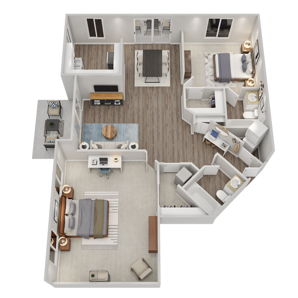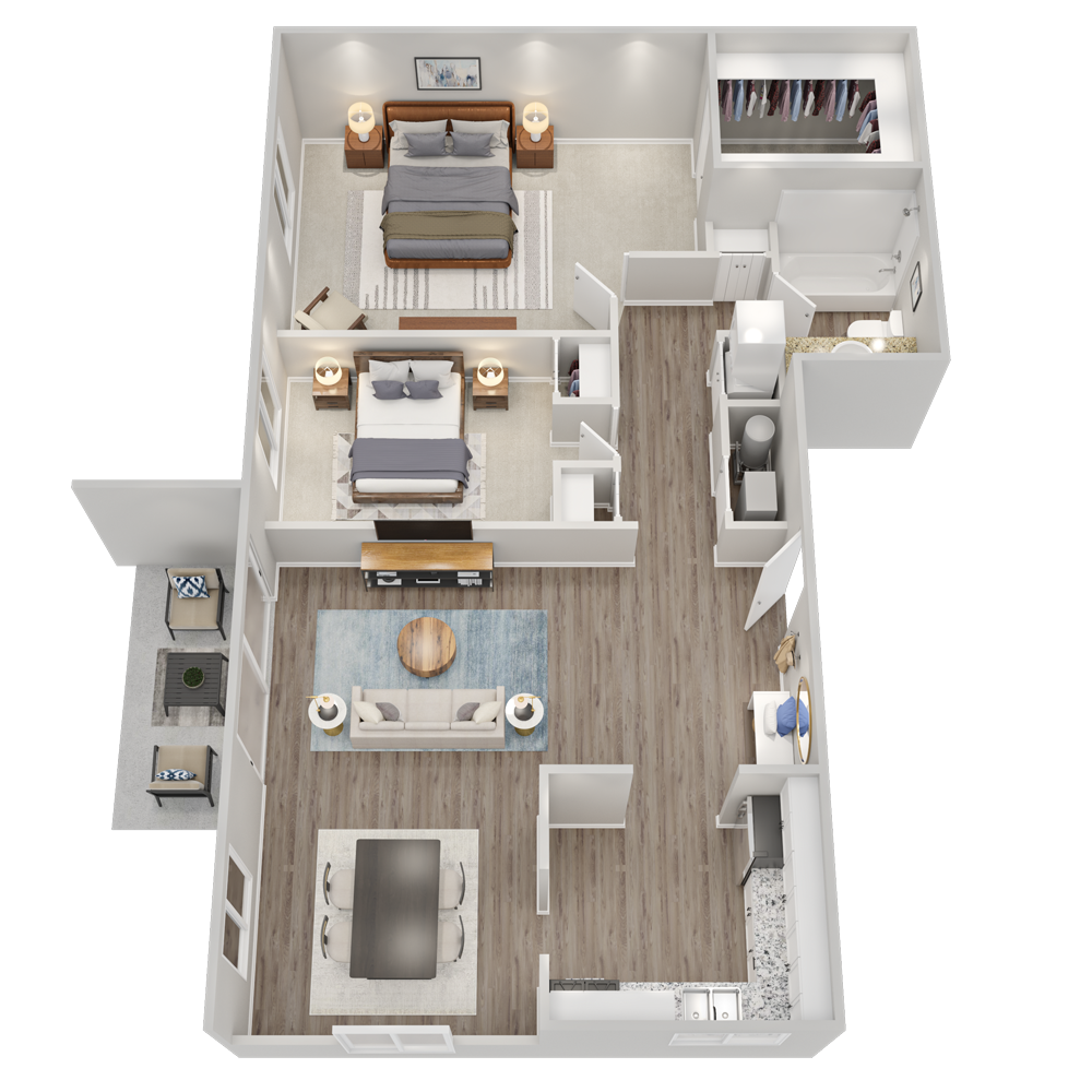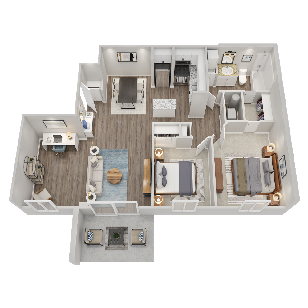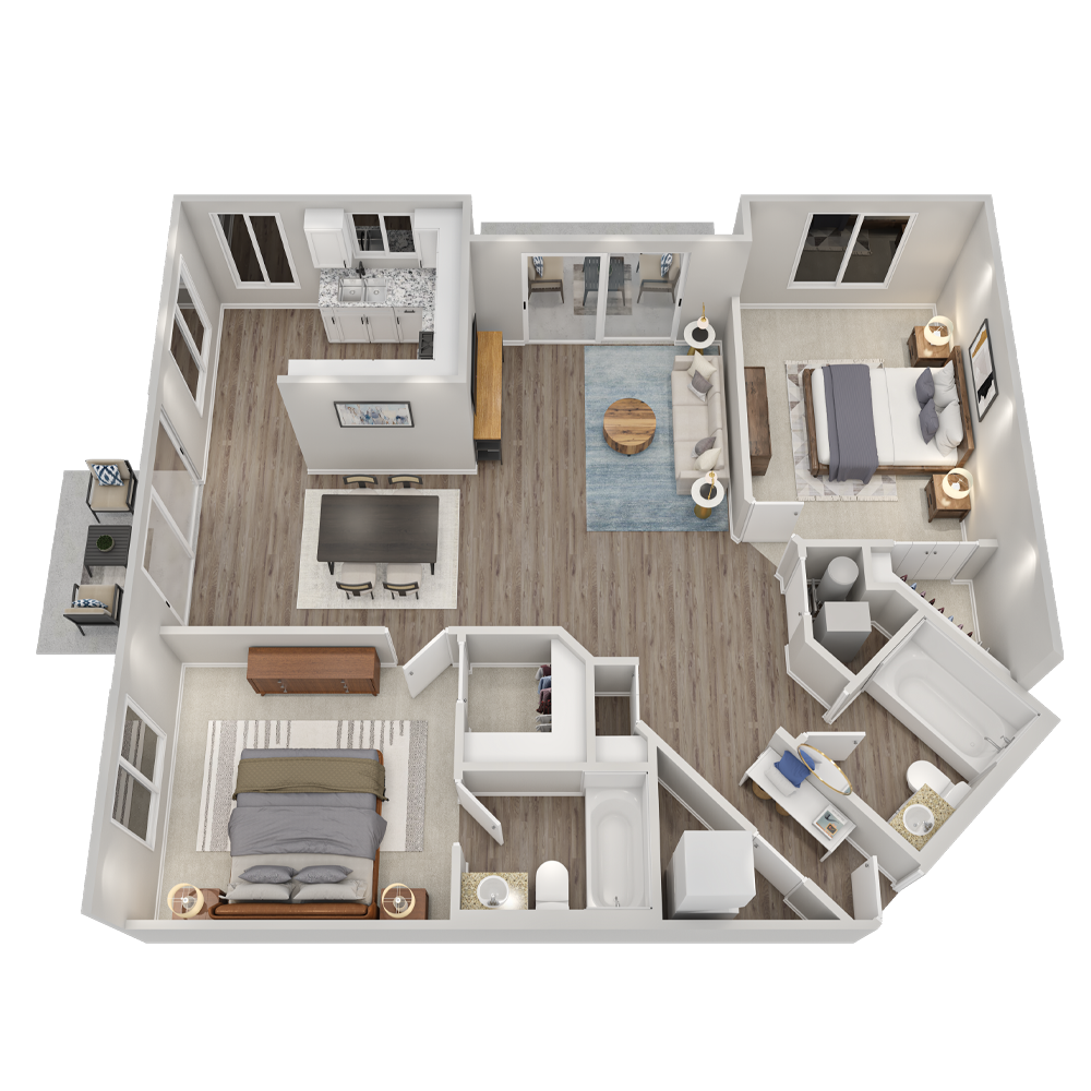 Modelo de apartamento: RedwoodDesde $2,4872 Dormitorios, 2 Baños, 993 sq ftDisponible December 25, 2025![]()